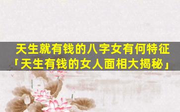 先 🌴 天富贵命的 🪴 女 🌺 命八字特征: