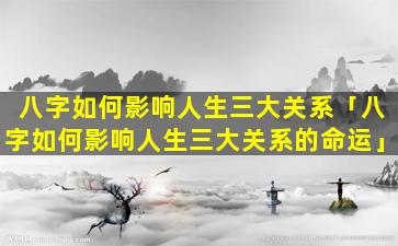注意:八字命理是一个复杂的体系,影,响,人生三大关系的因素众多不可单凭八字的一两柱判断需 🦈 要综合分析八字全盘以及大运流年的影响。