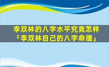 李双林的八字水平评价存在争议,各界看法 🐳 不 🦁 一。