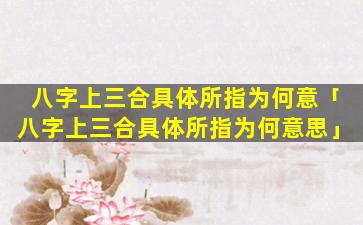 八字中的三合指的是三种地支成合的组合,可以有三 ☘ 合局和三合 🌳 会。