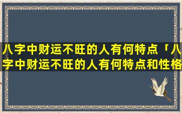 八字 🐳 中财运不旺的人特点 🦉 和性格:
