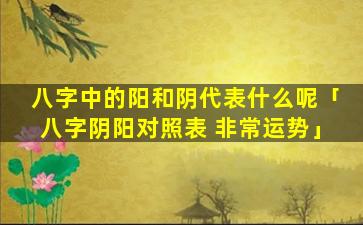 八字中的阳和阴代 🐠 表阴阳五行理论中的阴阳元素: