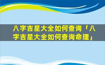 《三命通会》是中国古 🦄 代著名的命理学著作,其中包含了八字吉星大全。可。以按照日柱天干查找对应的吉星