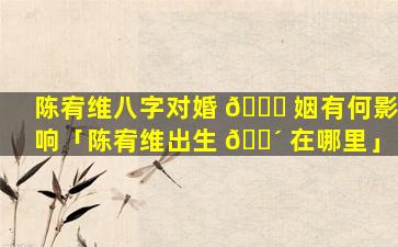 综合分析陈宥维八字中婚姻宫戌土为湿土婚,运较为平稳。但戌土,与,子 🦈 。水,相。合 🐵 ,相害配偶桃花较多婚恋容易受到第三者干扰水旺克火配偶财运不佳大运流年中年戊寅大运对婚运有利年,2024甲。辰年则需注意感情波折