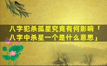孤 🦅 星在八字中代表 🐳 孤独和少人缘。犯杀孤星的人人际关系不佳 🦄 ,容,易。与人产生纠纷和矛盾孤立无援