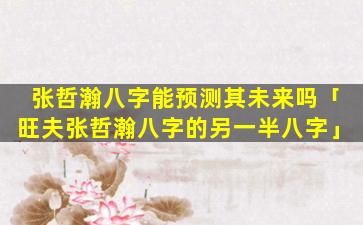 由于缺乏具体 🐺 信息,我无法提供张哲瀚八字的另一半八字。