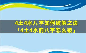 如何破“4土 🐦 4水”的八 🕊 字 🐋