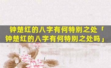 特殊之处:钟楚红的八字,财,旺,身,弱财星多现劫财星多形成了比较特殊的格局。这,种,格局。一,方,面,带。来财富另一方面也造 🌸 成财来财去需要谨慎理 🦉 财同时食伤星弱不利于事业但也使得她适合从事不需太多才华和表达能力的职业最终在电影行业取得成 🐠 功