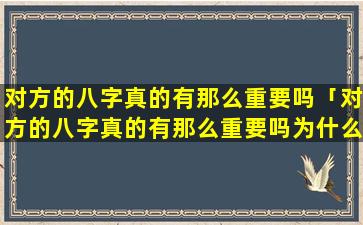 对方的八字可能 💮 很重 🐝 要,原因如 🐎 下: