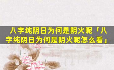 八字纯阴日并非是阴火 🦍 ,而是阳水。