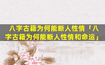 需 🌻 要注意的是,八字古籍断人性情和命运 🦆 并不是百分之百准确的人的命运是。一,个,复杂的过程受到 🦢 多种因素的影响包括个人努力、机。遇,和,社。会环境等因此八字古籍只能作为一个参考提供一种看待人生的独特视角