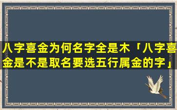 八字喜金指的是一个人的生辰八字中金元素偏弱,需,要通过运用五行相生相克的原则来补 🌻 足金元素从而 🐳 达到命理平衡的状态而。名字中的字,和五行。属性之间没有明确 🦟 的对应关系因此名字中全是木字并不一定意味着八字中金元素弱