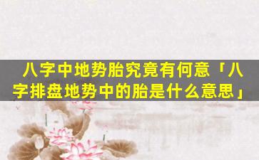 胎 🦉 位 🐱 ,八,字排盘地势 🌺 之一代表孕育。