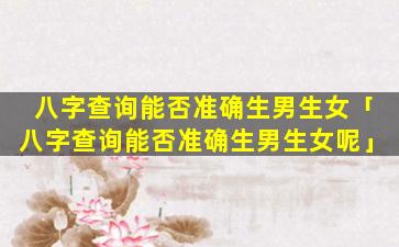 八字 🦅 查询不能直接反映个体的性染色体构成,因此无 🐶 法准确预测生男生女。