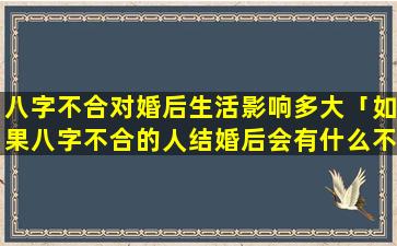 八 🌹 字不合对婚后生活的影响程度是一个复杂且有争议的话题,无法一概而论。