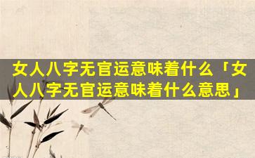 八字中的“官”一般指女性的丈夫或异性缘,无官 🐠 运意味着: