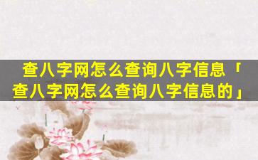 查八字网 🐬 在线查询八字 🦟 信息步骤: