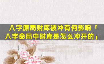 需要注意的是,财,库被冲只是一个八字命理 🐝 中的现象并非绝对的吉 🐬 凶判断。还需要,结。合八字中的其他因素综合分析才能得出准确的结论