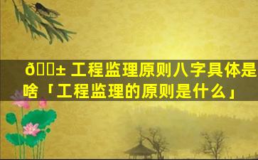 “工 🌾 程 🐡 监理原则八字”具体指: