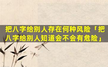 八字被他人掌握後他,們可能對自己的運勢 🐒 進行解讀並提供建議。這,可,能。會影響個人做出決策甚至改變人生方向但他人 🐼 提供的解讀未必正確或符合個人的實際情況