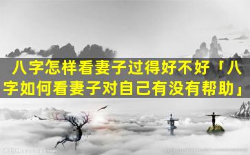 通过八字看 💐 妻子对自己是否有帮助 🐳