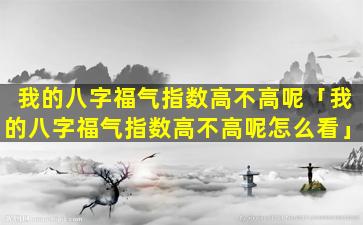 如何查看八 🌸 字 🐯 福气指数 🐯