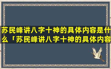 讲师简介苏民峰,著名术数家、八,字,学、大、师自幼习易精通八字紫微奇门遁甲等术数命理。常、年,应邀在各大电视台电台及企业授课其著作命理《点睛》系。列畅 🐈 销海内外