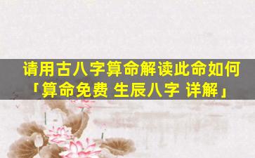 您可以通过以下网站获取免费的生辰八字详解 🪴 :