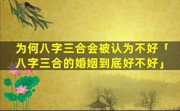 八字三 💐 合被 🦢 认为不好的原因有以下几点: