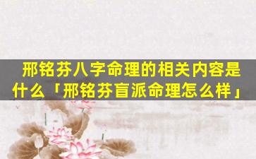 邢铭芬盲派命理 🦈 评 🐅 价: