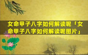 甲子八字,是指出生 🦊 于甲子年的女性命格。