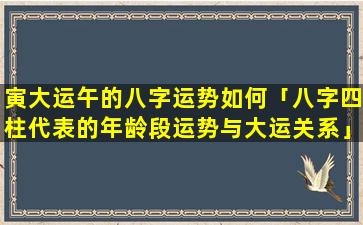 大 🦈 运吉凶对年龄段运势 🦁 的影响