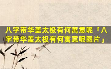 在八字命理 🌺 学中,"华"盖,为一种特殊的神煞代表着清高、孤、傲才华出众。而"太"极,则。指阴阳平衡万物的根源