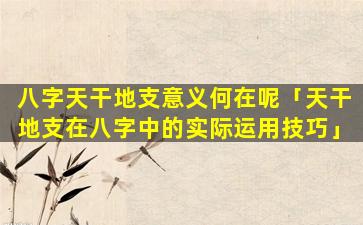 天干地支 🦉 在八字中的实际 🦟 运用技巧