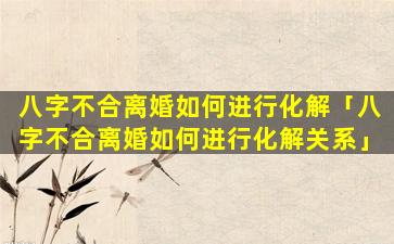 八字不合 💮 离婚化 🌴 解方法