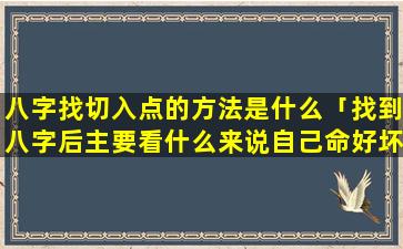 “八字找切入点的方法”是指在分析八字命理时,寻找某个 🌾 特定信息或 🐵 主题的入手点或焦点。