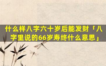 八 🍀 字中的“66岁寿终”并不是一个确切的死 🐱 亡 🦅 时间预测。