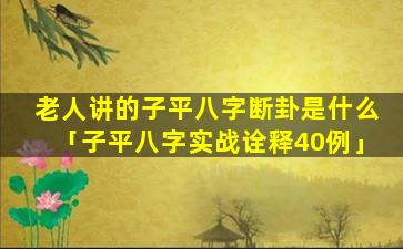 老 🐛 人讲的子平八 🌺 字 🐠 断卦