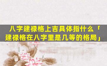 八字建禄格上 🦆 吉 🐅 的 🐴 特征