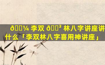 李 🐳 双林 🦋 八字命理 🐈 讲解