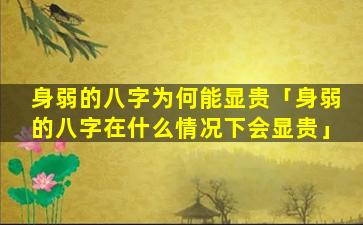 身弱八 🦁 字 🍀 显贵的条 🦊 件: