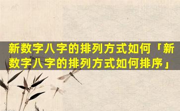 新数字八字的排列方式与传统的八字命理有所区别,采用的是如下方法 🦉 :