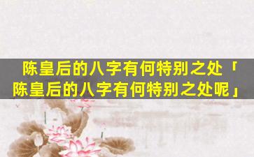 陈皇 🦆 后的八字格局较 🦟 高,但,也,有不利的因 🐘 素导致其一生波折起伏最终悲惨收场。