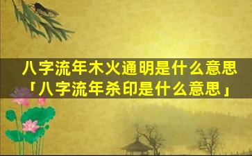 八字流年木火 🌵 通明是指个人八字中流年大运出现了木 🦅 属性和火属性同时旺盛的情况。