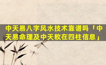 综合评价:中天易八字 🌿 风水技术是一门传统技艺,基于古老的中国文化和民间信仰。其,可。靠性有一定争议既有支持者也有反对者