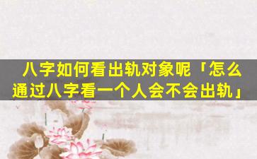 八字中没有专门用来 🐠 判断出轨对象的具体内容八字 🐼 。主 🍁 要用来预测个人运势、事、业财运婚姻状况等,无。法精准判断出轨对象
