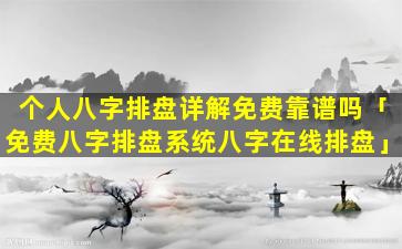 个人八字 🌿 排盘详解是否免费靠谱,取决于以下因素: