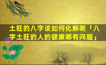 需要注意的是,八,字土旺仅 🦈 是影响健康状况的一个因素其他因素如年龄、体、质生活习惯等也会对 🕸 健康产生影响。建,议。根据个 🐝 人的具体情况就医咨询以获得针对性的治疗方案