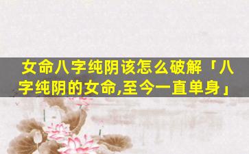 "八字纯阴的女命,至"今一 🦄 直单身的说法是缺乏 🌹 科学依据的迷信。
