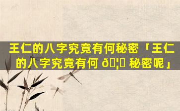 根据现有史料,王,仁的生辰八字并无确切记载因此无 🕷 法推 🐕 测其八字的 🐳 秘密。